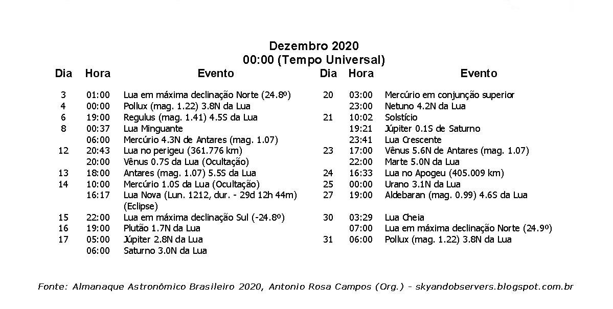 Semana de 13 a 19 de dezembro de 2020