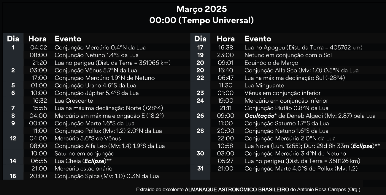 Semana de 9 a 15 de março de 2025