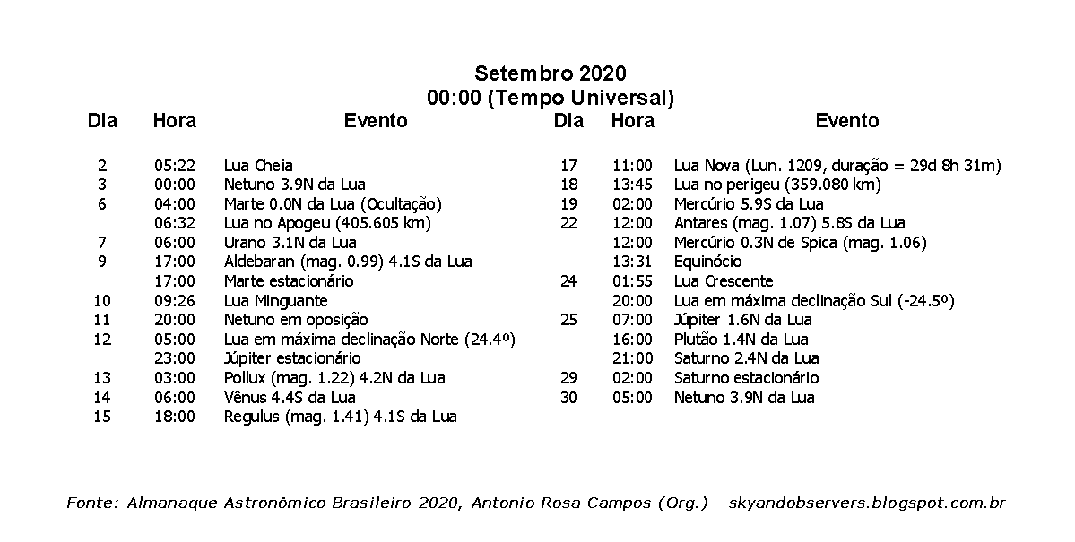 Semana de 13 a 19 de setembro de 2020