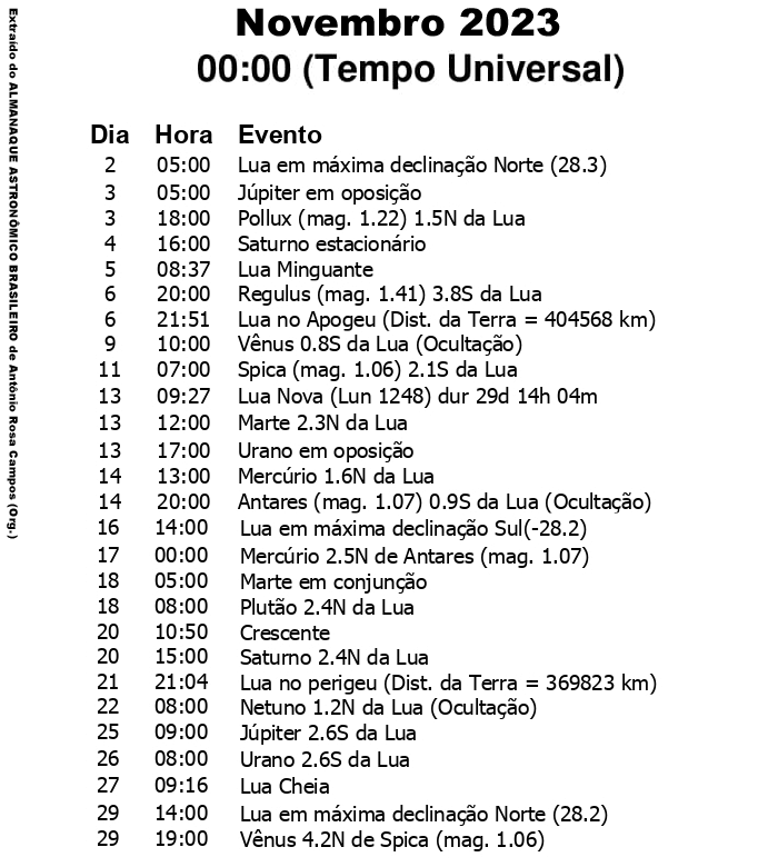 Semana de 5 a 11 de novembro de 2023