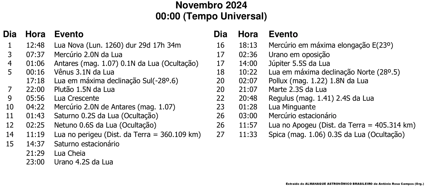 Semana de 17 a 23 de novembro de 2024